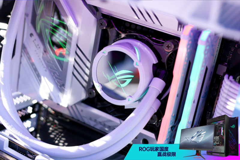 作为这款主机的绝代佳人,机箱选择了ROG STRIX HELI OS太阳神雪武战姬定制机箱,增加了多面UV印刷和复合LED灯板,科技感十足。雪武战姬的二次形象与现场冰雪环境更加和谐。ROG STRIX LC吹雪360ARGB水冷散热器,整体采用纯白配色,颜值饱满!定制ARGB风扇+AURASYNC神光同步技术,可以随时匹配玩家当前的电子竞技氛围。3台12cm风扇采用ROG自主研发的ARGB风扇,全面加速散热效率,保证玩家游戏体验。电源采用ROGSTRIX雪鹰850W电源,独特的纯白配色+定制的白色模块线,完美融入吹雪主题。