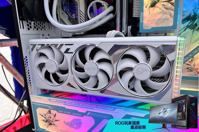 在显卡方面,我们看到的是全新的华硕 RTX4090-24G-WHITE白色显卡,首先暴露在白色版40系列显卡上,延续了黑色版3.5槽的高效散热模块。纯白色金属外壳和反光银色的ROGLO,让这一代显卡的价值达到了一个新的高度。核心配备了全新的NVIDIA Ada Love lace架构,可以给游戏玩家和创作者带来惊人的视觉效果,惊人的高帧率和AI加速功能,给予最强大的工作效率祝福!