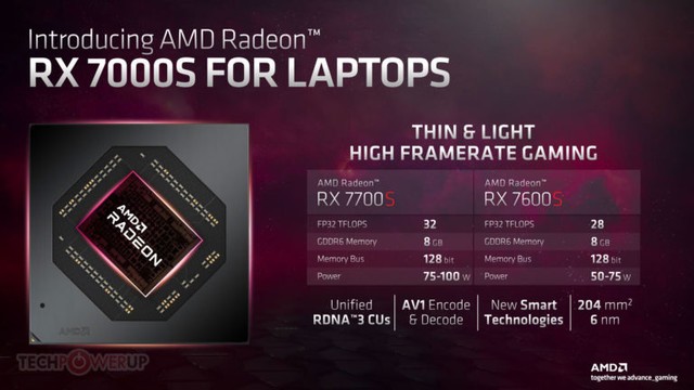 RX7600M,RX7700S和RX7600SGPU都有相同的内存和缓存配置。唯一不同的是,7600M/7600S有28个计算单元,它们被锁定为90W或75W功率。