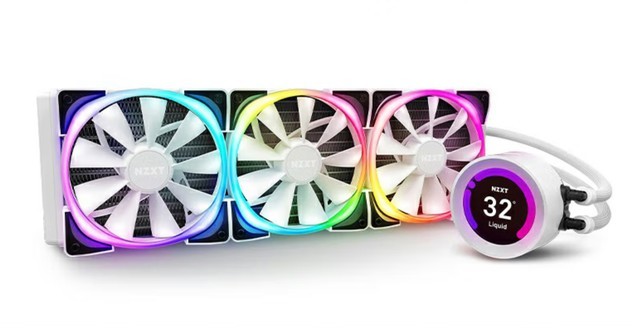 由于CPU没有配备散热器,因此需要自行选购。考虑到13900KF强大的性能,风冷散热器根本压不住,而且普通的360水冷面对烤鸡也有很大压力,因此推荐NZXT恩杰的海妖Z73RGB一体式360水冷,根据反馈这款散热器性能非常不错,只是价格有些贵。除此之外,它还是颜值最高的360mm一体式水冷散热器,没有之一,不仅配备了RGB风扇,更配备LCD水冷头,可以显示冷却液温度等信息,也可以在专用软件中定制显示的信息。