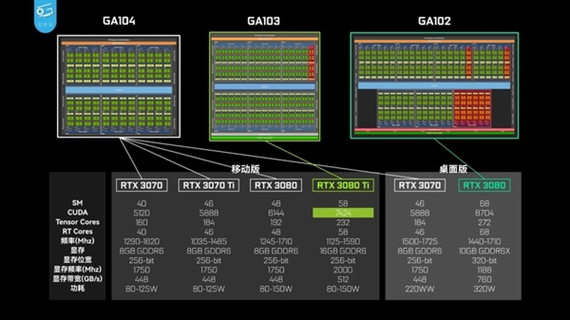 NVIDIA不久前两款高性能移动版GPU,分别是RTX3080Ti和RTX3070Ti。RTX3080Ti采用首次露面的GA103核心,后者继续使用GA104核心。
