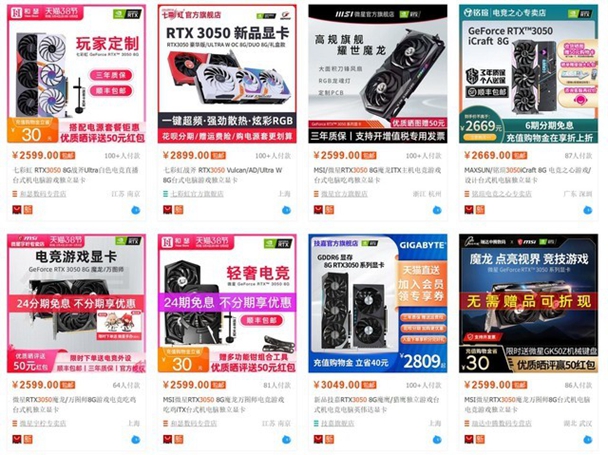 等等,什么时候RTX3050也有1000的溢价了?看看电商满眼的2899,说好的1899元呢?