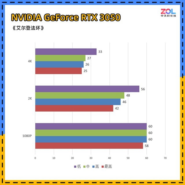 RTX3060在性能上相较RX6600的综合提升约为5%,表现在帧数上则是2K分辨率下的满60帧,至于4K分辨率依然达不到流畅的标准。