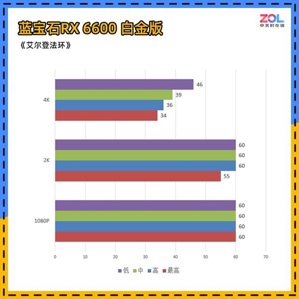 蓝宝石 RX6600 白金版同样是定位于1080P分辨率下的3A游戏,可以看到以这款显卡的性能,足够稳定1080P分辨率60帧,即便在2K分辨率下,适当调低画质也有一战的实力。