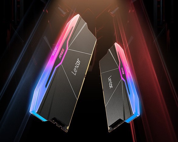 在散热方面,雷克沙 32G DDR5 6800内存外部配备了1.8mm厚的铝制散热模块,并使用了PMIC专用导热硅脂垫来填充空隙,确保芯片热量能够迅速散发,同时外观也时尚大方。雷克沙 32G DDR5 6800内存顶部还配备了RGB灯带,内置8颗高亮LED灯珠,支持多种灯光模式和色彩选择,可与主流主板实现灯效同步。