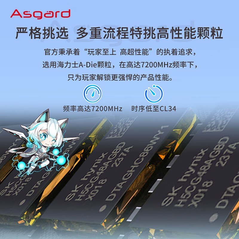 阿斯加特 32GB DDR5 7200 台式机内存条 吹雪联名款马甲 适配黑神话悟空