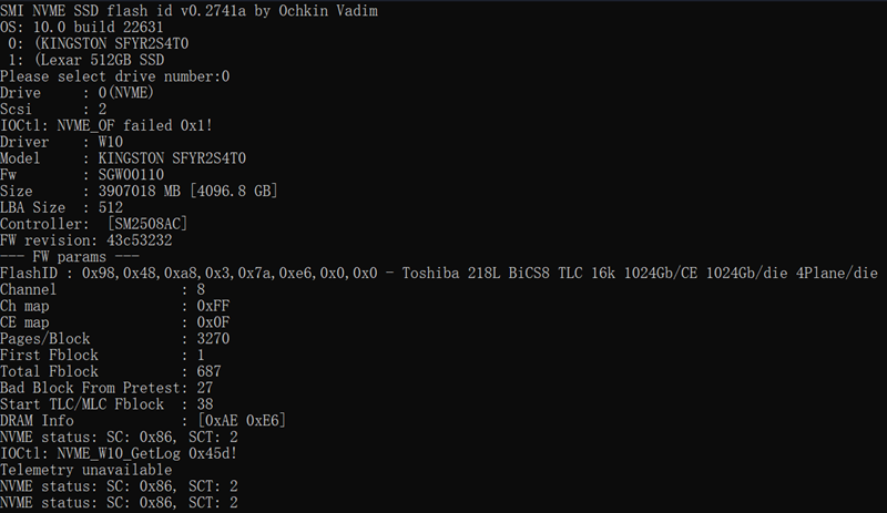 核心元件NAND FLASH芯片为金士顿自封装的铠侠218层BiCS8 TLC,单颗容量2TB,两颗组成4TB标称容量。DRAM独立缓存芯片为美光LPDDR4,从4RB77的编号来看容量为4GB,实现1TB搭配1GB的规格。