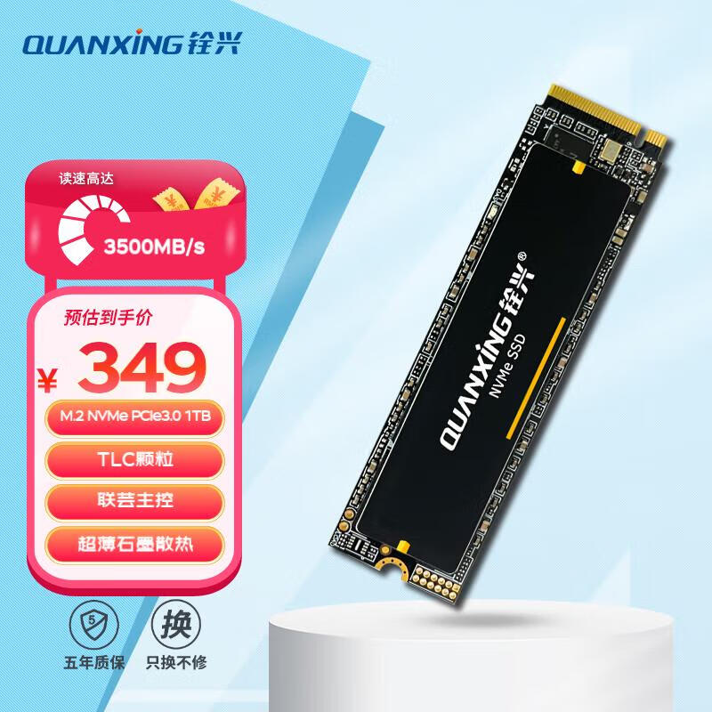 铨兴 N301 1TB SSD固态硬盘 AI PC存储配件 TLC颗粒 M.2接口 2280(NVME协议)PCIe3.0 读速3500MB/s