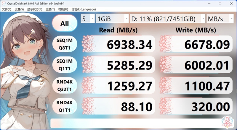 我们都知道3A大作对硬件包括固态硬盘是一项考验,同时运行4款3A游戏更是需要硬盘有高速的读写性能。我们先对WD_BLACK SN850X进行读写速度的测试,来看一下它的理论性能。