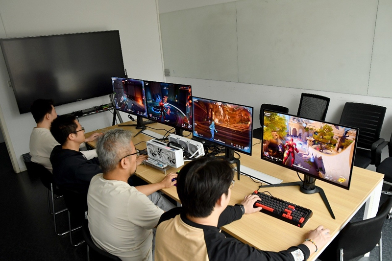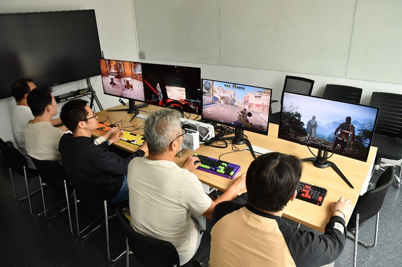 平台使用的RTX 5090 D显卡拥有3个DP 2.1b接口以及一个HDMI 2.1b接口,原生支持4台显示器,通过虚拟机分配资源,并将USB拓展坞分配键鼠外设,实现了一套平台分配成4个主机,并能同时登陆4个steam账号,进行游戏大作体验。