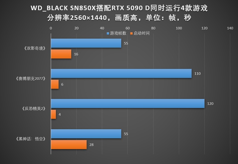 在加载速度方面, WD_BLACK SN850X表现出色,游戏并没有因为分成4个平台而有明显的感知,《CS2》仅用4秒的时间就进入了游戏,《赛博朋克2077》也仅用了6秒时间,随后是《双影奇境》的16秒和《黑神话:悟空》的28秒,和单独运行一个游戏的加载时长基本上一致。