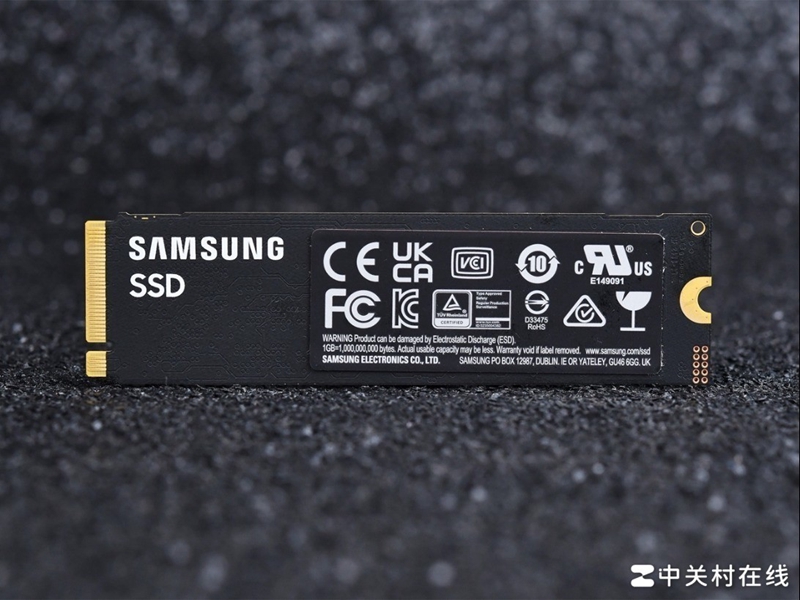 三星 9100 PRO正面标签采用全新设计,相对之前的产品变得更加细长,但风格依然与系列保持一致。除此之外,标签还标注了容量和S/N编码等信息,3.3V 2.9A的工作电流,与自家的980 PRO相同,达到PCIe4.0高端产品的水准,这也是实现高性能却不“发烧”的关键所在。