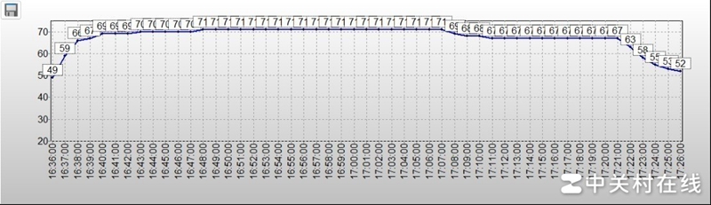 IOmeter顺序会让固态硬盘进入满载状态,测试的时候我们全程记录了三星 9100 PRO散热片版4TB的温度变化。从温度曲线看,在25℃室温下待机温度仅为49℃,测试中最高温度仅有71℃,不会触发动态散热保护机制(DTG),因此长时间、重度工作的视频/3D图形专业创作型用户,更推荐选择散热片版。测试完成后5分钟,温度就降到接近待机状态,可见9100PRO的温度控制依然非常出色。