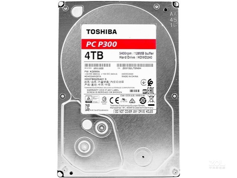 东芝 P300 4TB 台式机机械硬盘 128MB 5400RPM SATA接口系列(HDWD240)