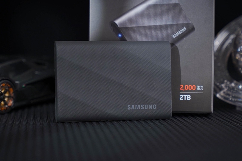 三星T9是三星移动固态硬盘家族中的旗舰产品,体型只有名片大小,随身携带非常方便。机身包覆橡胶材质外层,并搭配了奢华的碳纤维纹路,不仅沉稳大气,还具备3米的跌落防护能力,有效应对携带时的突发意外,最大限度保障数据安全。