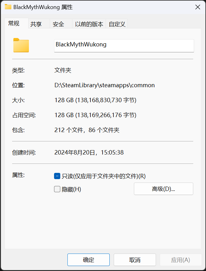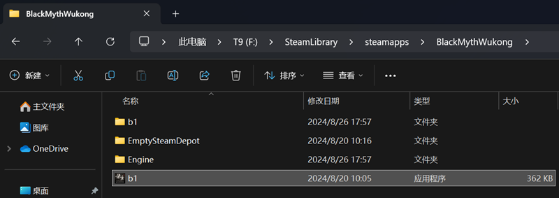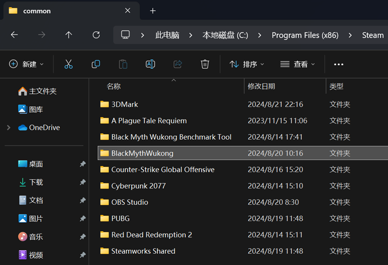 就是common中的这个BlackMythWukong这个文件夹,将其复制到三星T9中的SteamLibrary/steamapps/common目录中。