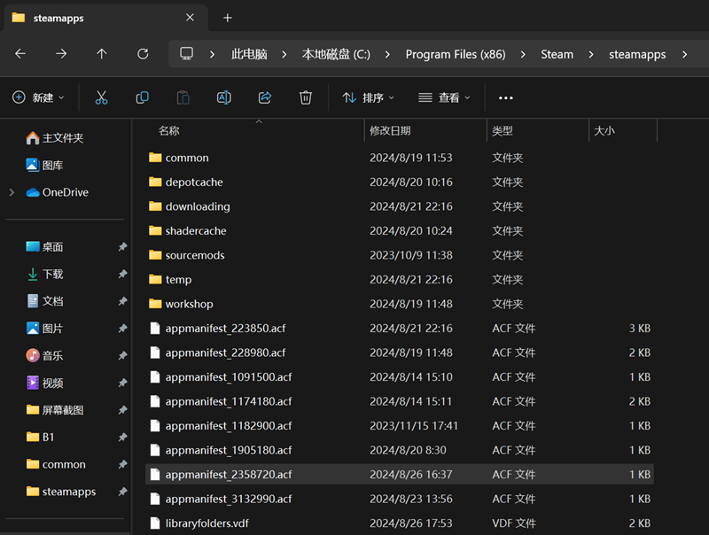 第三步,将游戏库中的steamapps文件夹中appmainfest_2358720.afc文件复制到三星T9中SteamLibrary/steamapps目录下。