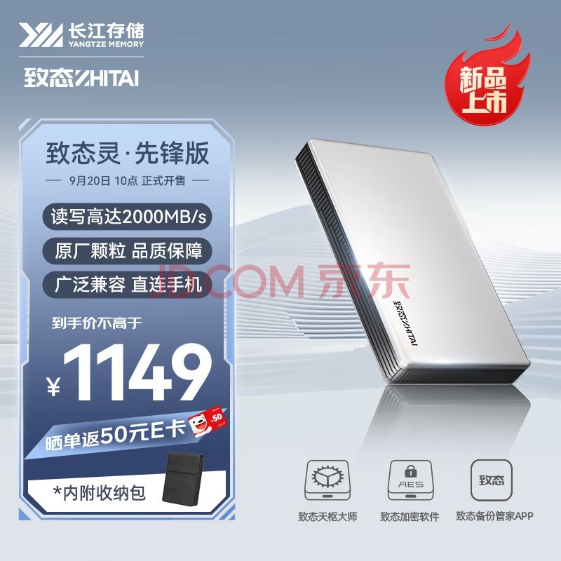 目前,致态灵・先锋版移动固态硬盘已在京东抢先发售。在致态京东自营旗舰店下单购买致态灵・先锋版移动固态硬盘1TB或2TB版本并参与评论晒单,即可返50元京东E卡。各位想要Get办公新体验的职场人,赶快行动吧!