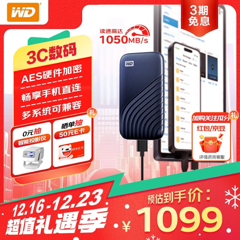 西部数据 My Passport SSD“随行”SSD版移动硬盘的优惠力度非常大,满99减20元优惠券可以使得商品价格直接降到了1079元。超值的价格让人难以抵挡它的诱惑。