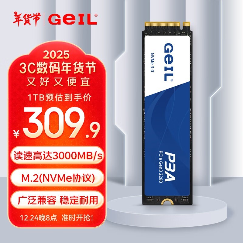金邦 P3A 1TB SSD固态硬盘 M.2接口PCIe 3.0(NVMe协议)台式机笔记本硬盘 高速3000MB/S