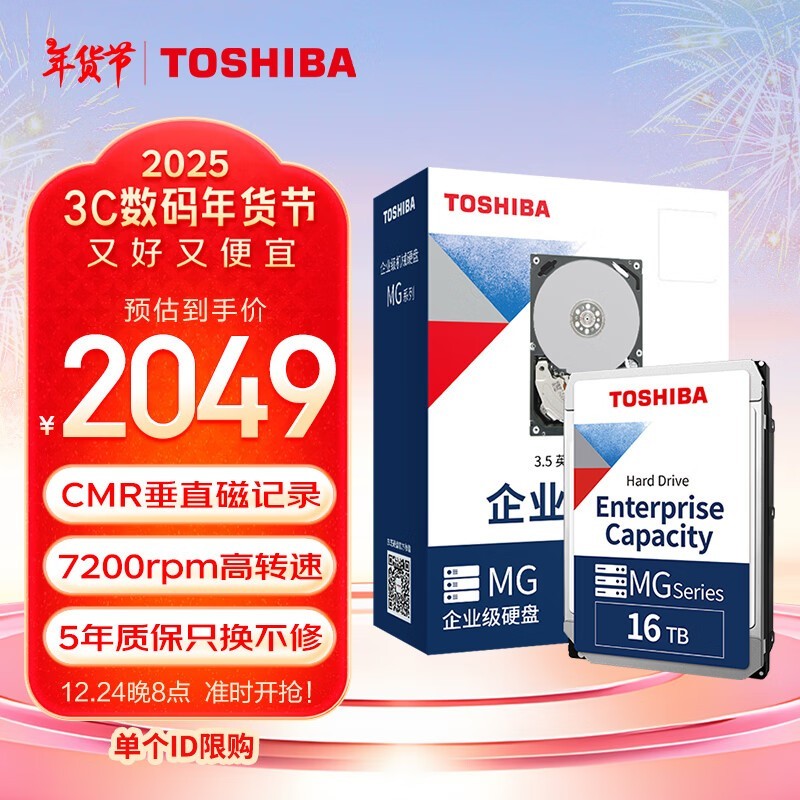 东芝 MG09ACA16TE 16TB 7200转 垂直式CMR 512MB SATA接口 机械硬盘 企业级硬盘
