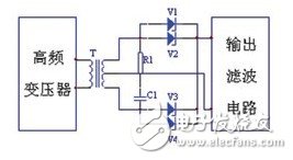 整流二极管在关断期,由于反向恢复时间会引起尖峰干扰。为减少这种电磁干扰,必须选用具有软恢复特性的、反向恢复电流小的、反向恢复时间短的二极管。肖特基势垒二极管是多数载流子导流,不存在少子的存储与复合效应,因而也就会产生很小的电压尖峰干扰,故采取以下措施。