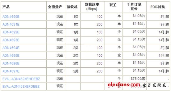 ADI公司的ADN469xE收发器提供半双工和全双工版本,完全兼容TIA/EIA-899 M-LVDS标准。这些新款收发器提供以下配置: