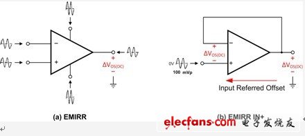 电压反馈放大器的反相和非反相引脚的特性基本相同。但是,非反相输入(请参见图 1b)的放大器 EMI 耐受度测试最为简单。