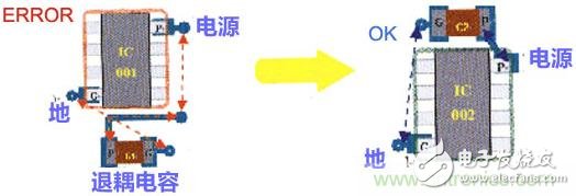 退耦电容的摆放的位置非常的重要。摆放不合理根本起不到退耦的效果。其原则是:靠近电源的管脚,并且电容的电源走线和地线所包围的面积最小。