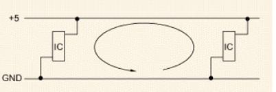 电流通过感应进入到电路环路,这些环路是封闭的,并具有变化的磁通量。电流的幅度与环的面积成正比。较大的环路包含有较多的磁通量,因而在电路中感应出较强的电流。因此,必须减少环路面积。