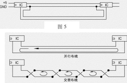 减少环路面积及感应电流的另一个方法是减小互连器件间的平行通路,见图4。