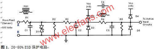 抗静电(ESD)器件有时被作为一种“万能保护方案”用于不同场合,这显然是一个误区。我们的目标是依照20-80%的原则——一种商业运作规则,即“80%的销售额源于20%的客户”,利用一个简单电路(图1)解决大多数应用中的ESD保护问题。