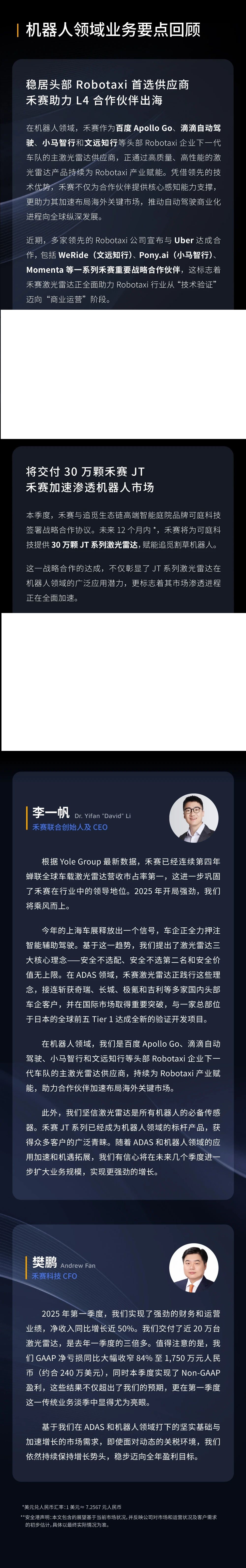 禾赛科技发布了2025Q1财报:一季度营收同比增长近50%,预计全年同比增长44%至69%