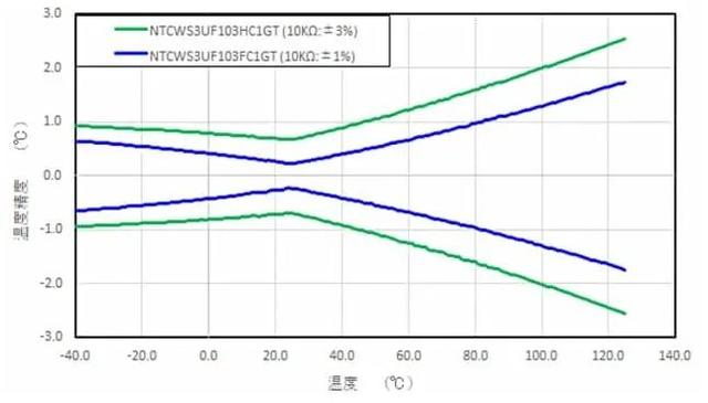 NTCWS系列中电阻公差为±3%的产品,在25℃温度条件下的温度测量精度为±0.7℃;电阻公差为±1%的产品,温度测量精度则高达0.3℃。因此,对于温度测量精度要求较高的应用,推荐选用电阻公差为±1%的产品。