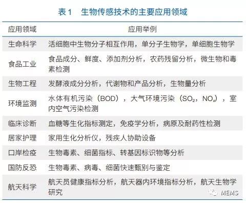 20 世纪 60 年代,美国学者电分析化学专家 Leland C. Clark Jr 提出,对生物化学物质的测定,能否像 pH 电极那样便捷?这导致了酶电极(enzyme electrode)即第一个生物传感器(biosensor)的问世。半个世纪以来,生命科学、化学、物理、信息、材料、仿生等多学科原理和技术纷纷融入,使生物传感发展成为一门典型的汇聚技术(convergence technology)。它被赋予若干特征——简便、灵敏、快速、准确,因而在生命科学研究、疾病诊断与居家监护、生物过程控制、农业与食品安全、环境监测与污染控制、生物安全与生物安保、航天、深海和极地科学等领域展现出广阔的应用前景(表 1)。