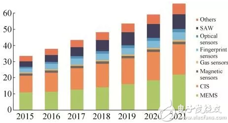 图3 2017~2022年MEMS市场增长预测(含RF MEMS未来趋势)