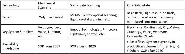 不同类型激光雷达的比较(来源:IHS Markit) 与此同时,供应商通过开发各种光束控制技术,不断提高激光雷达的耐用性、尺寸和成本。这些技术既有机械也有MEMS和全固态。 据Magney所述,机械激光雷达(例如Velodyne 128通道产品)由于可以产生360度的点云,非常适合地图构建。 但是对于量产汽车的部署,基于固态器件(MEMS或OPA(光学相控阵))的激光雷达非常好使,Magney说。它们也可以在自己的视野内产生一个点云。 成本更低Flash器件也在出现。它们中有一些被设计成接近探测器,成本低于100美元,Magney表示。缺点是分辨率有限,无法对物体进行分类,他解释说。
