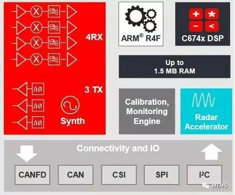 TI的汽车毫米波雷达传感器将射频(RF)和模拟功能与数字控制功能集成到了一个芯片中