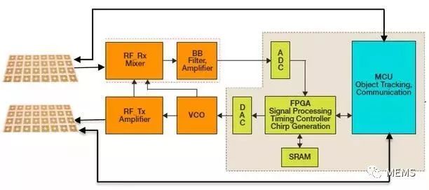 Metawave的模拟雷达技术是基于电子可控天线。它使用一根带有两个端口的天线:一个端口连接到Tx或Rx链路,另一个连接到MCU。MCU通过查找表来定义和控制天线波束宽度和方向,从而使Metawave的模拟雷达能够实现微秒级速度的扫描