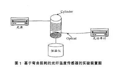 基于弯曲损耗的光纤温度传感器利用硅纤芯和塑料包层折射率差随温度变化引起光纤孔径的变化、光纤的突然弯曲引起的局部孔径的变化的原理测量温度。乌克兰采用EBOC生产的多模阶跃塑料包层硅纤芯光纤HCN~H,已做出基于弯曲损耗的光纤温度传感器,其测温范围一30℃~70℃,灵敏度达到O.5℃。