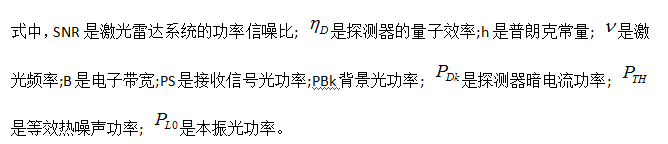 非相干激光雷达的信噪比SNR方程可以表示为: