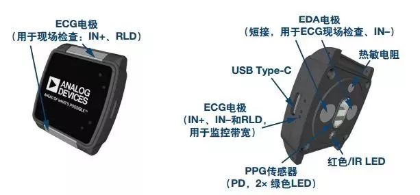 图2. VSM手表(集成多款ADI器件,旨在凸显超低功耗、小尺寸轻型产品)