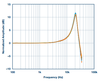 ADXL1001/ADXL1002的频率响应如图4所示。旋转机械中发生的主要故障(如套筒轴承损坏、对准误差、不平衡、摩擦、松动、传动装置故障、轴承磨损和空化)都在ADXL100x系列状态监控加速度计的测量范围以内。