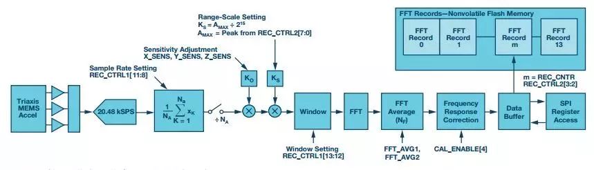 频域处理包括针对各轴的512点、实数值FFT和FFT均值功能,后一功能可降低本底噪声变化,从而提高分辨率。ADIS16227和ADIS16228全集成式振动分析系统可以缩短设计时间,降低成本,降低处理器要求,减少空间限制,使其成为CBM应用的理想选择。