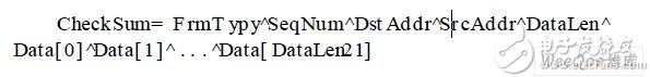 该帧的第1 个字符表示帧类型( frame. type) : 0x00为命令帧; 0x01 为数据帧; 0x02 为确认帧; 0x03 为错误帧; 0x04~ 0xFF 保留。第2 个字符表示包序列号( se2quernce number ) 。第3 个字符表示数据传送的目标节点( destination address) 。第4 个字符表示数据的源节点( source address) 。第5 个字符表示数据的长度( datalength) 。后续是数据负荷( data payload) , 长度为datalength。最后一个字符是校验和( check sum) , 其值根据下式算得。