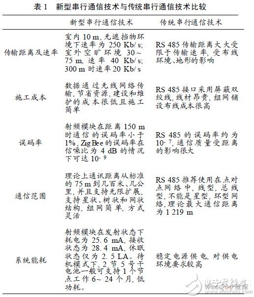 随着计算机应用的普及, 计算机与计算机、计算机与数据终端间的通信应用日益广泛, 由于电气标准相对成熟和完善, 串口通信在其中的应用十分广泛。但在通信设备距离相对较远或者有线电缆铺设不便的情形下,无线串口通信的实现将有利于拓展串口的应用范围, 同时有效节约资源。当前无线串口通信的实现主要依靠蓝牙、红外、WIFI 等技术, 但蓝牙和红外的推广都受到距离、功耗的限制, 红外适用于单对单的直接通信, 距离限制在1 ~ 2 m; 蓝牙的距离也仅在10 m 左右, 并且WIFI 和蓝牙系统的建设和使用成本都远远高于Zig2Bee 系统, 且ZigBee 具有低功耗、高通信距离等优点,在无线串口的实现中具有明显的优势。本系统利用以ZigBee 协议为基础的射频芯片CC2430 模块实现无线串口技术, 利用CC2430 自带的UART 模式, 向下兼容RS 232协议, 有很强的应用性和推广性。利用ZigBee网络架构无线串口在设备数目较多, 拓扑相对复杂, 互相通信需要穿越墙体等障碍物时, 具有通信距离远, 功耗低, 安全可靠的优点 。
