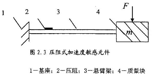 MEMS压阻式加速度传感器的敏感元件由弹性梁、质量块、固定框组成。压阻式加速度传感器实质上是一个力传感器,他是利用用测量固定质量块在受到加速度作用时产生的力F来测得加速度a的。在目前研究尺度内,可以认为其基本原理仍遵从牛顿第二定律。也就是说当有加速度a作用于传感器时,传感器的惯性质量块便会产生一个惯性力:F=ma,此惯性力F作用于传感器的弹性梁上,便会产生一个正比于F的应变。,此时弹性梁上的压敏电阻也会随之产生一个变化量△R,由压敏电阻组成的惠斯通电桥输出一个与△R成正比的电压信号V。