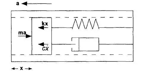 电容式加速度传感器从力学角度可以看成是一个质量—弹簧—阻尼系统,加速度通过质量块形成惯性力作用于系统,如图一所示。