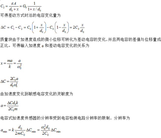 电容式加速度传感器是基于电容原理的极距变化型的电容传感器,其中一个电极是固定的,另一变化电极是弹性膜片。弹性膜片在外力(气压、液压等)作用下发生位移,使电容量发生变化。这种传感器可以测量气流(或液流)的振动速度(或加速度),还可以进一步测出压力。