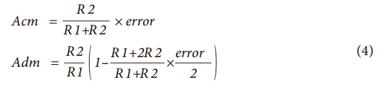 根据等式3,共模增益(Acm)和差分增益(Adm)可定义为: